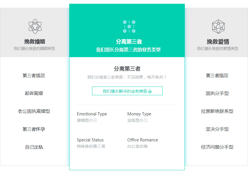 我们擅长解决的业务范围:挽救婚姻、拯救感情